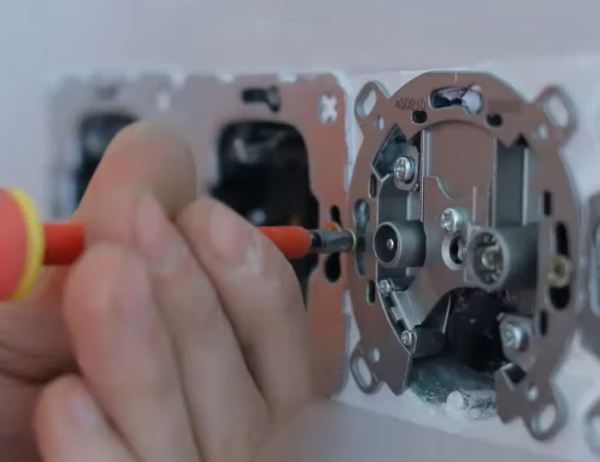Если в подрозетнике предусмотрены дополнительные винты, их устанавливают для более надежной фиксации. В завершение монтируется декоративная рамка.