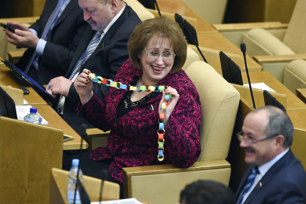 А член комитета по бюджету и налогам Вера Ганзя, известная по жалобам на размер зарплаты депутата, попала в кадр с разноцветной самодельной гирляндой. Хотела ли Ганзя использовать ее в выступлении или преследовала иную цель, неизвестно.