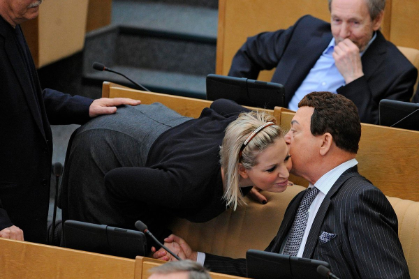 А в 2012 году чья-то рука оказалась на ягодицах певицы и члена комитета по культуре Марии Максаковой (внесена Минюстом в реестр иноагентов), склонившейся для разговора с легендарным артистом, депутатом Иосифом Кобзоном. Последний еще не раз попадал в кадр с женщинами-коллегами по Думе, а Максакова вышла замуж за коммуниста Дениса Вороненкова и стала матерью «первого межфракционного ребенка».