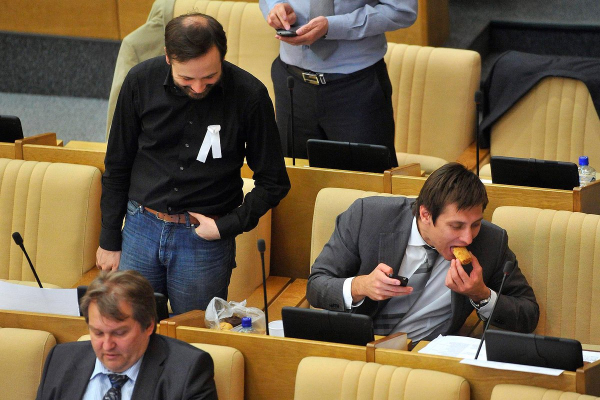 Думским фотографам удавалось запечатлеть восторг депутата Михаила Дегтярева от предложенной Владимиром Жириновским конфеты «Огни Москвы», интерес Ильи Пономарева (включен Минюстом в реестр иноагентов и перечень экстремистов и террористов Росфинмониторинга) к булкам Дмитрия Гудкова (включен Минюстом в реестр иноагентов и перечень экстремистов и террористов Росфинмониторинга), а также ставшую мемом меланхоличную попытку Сергея Фургала, осужденного по статьям об организации расправ над двумя предпринимателями и покушении еще на одного бизнесмена, попить из стакана, не используя рук.