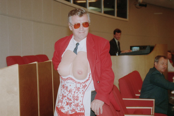 Так, однажды в Думе удалось снять, как неизвестный депутат, внешне похожий на режиссера Станислава Говорухина, через главу комитета по региональной политике Виктора Усачева тянется в сторону груди зампреда комитета по культуре Зои Степановой.