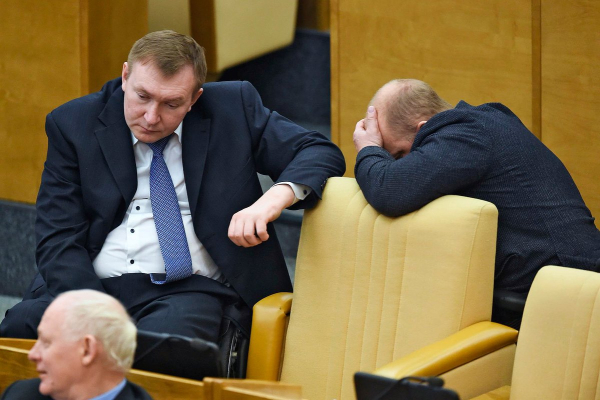 Скучал и грустил на рабочем месте не только Фургал — фотографы снимали зевки депутатов Дмитрия Свищева и Анатолия Грешневикова, подавленного Сергея Поддубного и держащегося за голову Владимира Крупенникова.