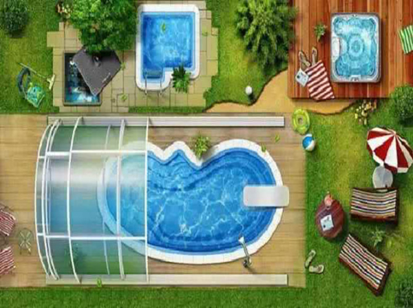 В первую очередь необходимо правильно выбрать месторасположение крытого бассейна на подворье. Нужно максимально спрятать водоем, снизить ветровые нагрузки на крытую часть. Кроме того, потребуется спланировать и проложить подвод горячей воды из дома, разместить колодец с помпой и фильтром.