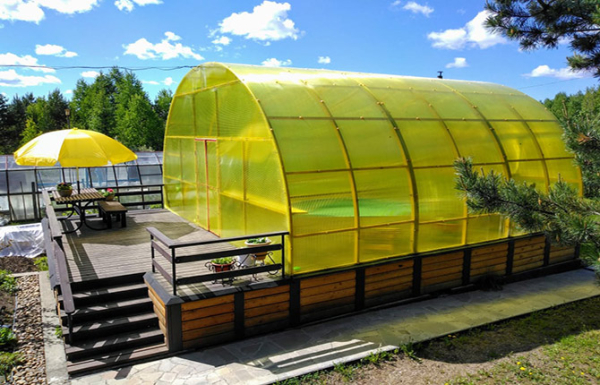 Размеры тепличного каркаса не позволяют полностью закрыть стационарный бассейн. Поэтому дачные крыши-теплицы применяются в качестве крытой надстройки преимущественно для мягких каркасных водоемов.