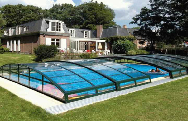 Высота крыши составляет всего пару метров, но благодаря возможности сдвигать секции в сторону купающиеся могут плавать как под крышей, так и под крытой надстройкой.
