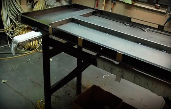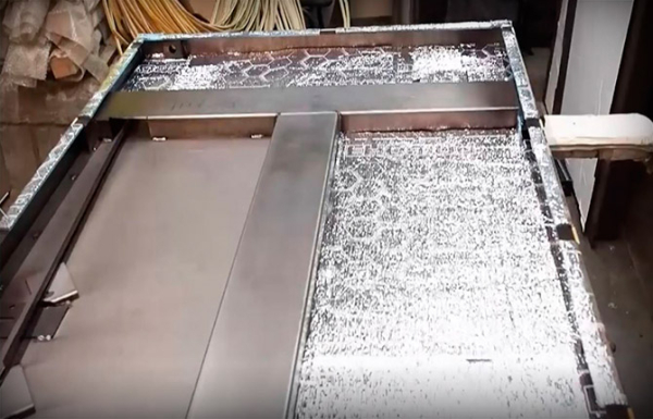 Металлическая рама собирается сваркой на заводе, тонкостенный профиль сваривается вручную углекислотным полуавтоматом в короб. Причем сборка выполняется в специальных приспособлениях — кондукторах, благодаря которым удается избежать деформации короба (кручение «пропеллером»). Поэтому короб приезжает с завода в комплекте с металлической дверью. И так же устанавливается вместе с дверью внутрь проема стены.