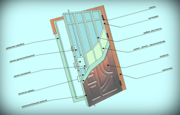 Обычно внутренние полости входной двери засыпаются вязким наполнителем. Он работает как утепление и шумоизоляция. Кроме того, наполнитель не дает возможность работать отрезным кругом, высокооборотным сверлом или газовой горелкой.