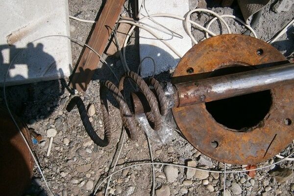 - На прут крепим специальную насадку в виде штопора. Изготовить такую витую насадку может кузнец, токарь-фрезеровщик или в качестве насадки можно использовать любой готовый подходящий элемент. При этом важно, что диаметр витков насадки быть таким, чтобы прут беспрепятственно проходил по обсадной трубе.